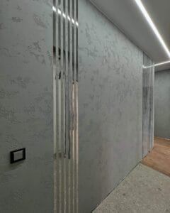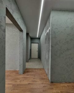 - Можливість перевантаження інтер’єру – У невеликих приміщеннях або при неправильному підборі кольору і текстури штукатурка може виглядати занадто нав’язливо. Можна виділяти невеликі об’єми акцентними техніками, а більшість об’єму – фоновими.